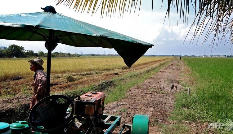 File photo: A Thai farmer works in rice fields in Pathum Thani province. Photo: AFP.