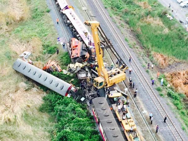 ABOVE: At least 50 people were injured on Thursday when one train leaving Bangkok rear-ended another train leaving Bangkok. Photo: Thai Free News