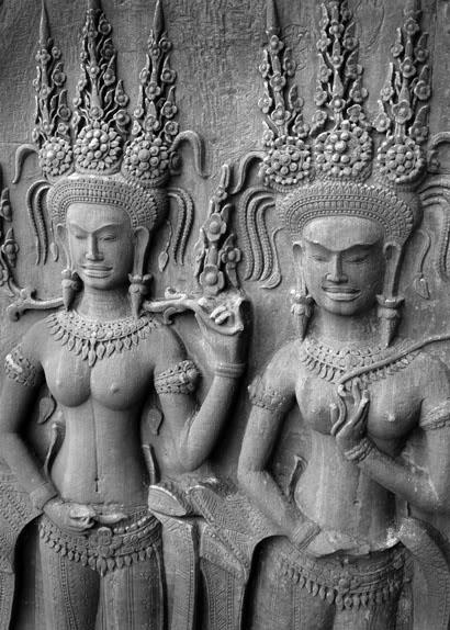 You can’t look up, down, left or right without seeing carvings of topless Apsara, or temple dancers. But times have changed. Photo: Wikimedia
