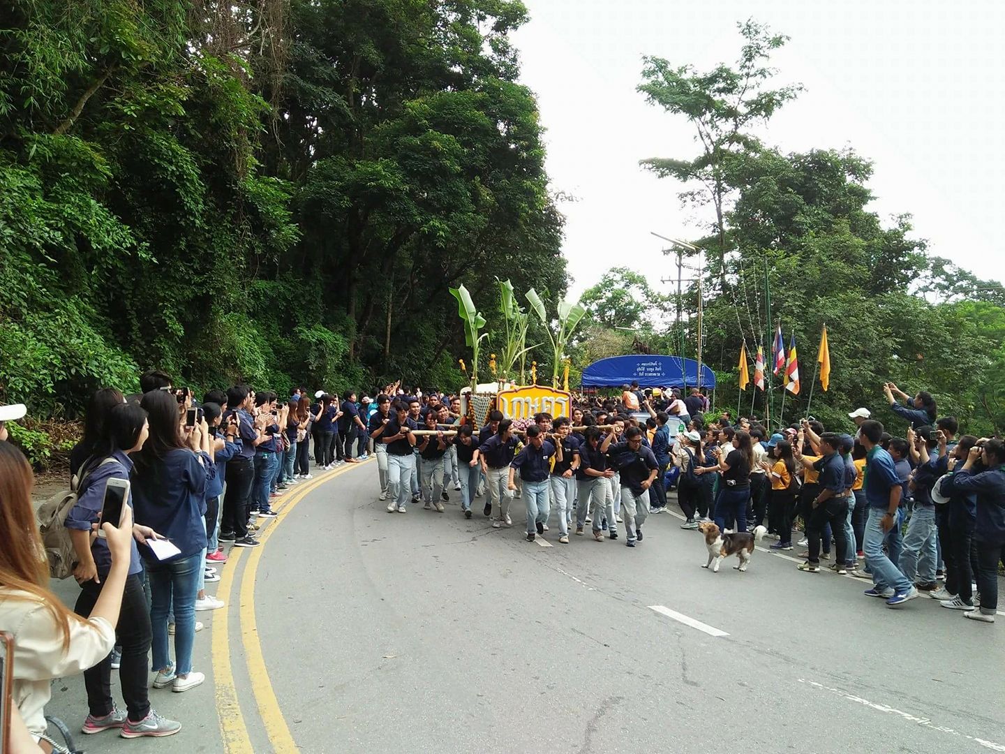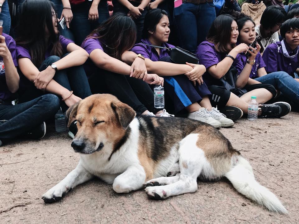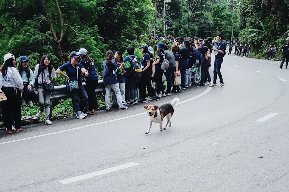 For another year, a stray dog living at Chiang Mai University known as “Shortie” joined the freshman run up the province’s famous mountain, Doi Suthep — a tradition continued each year by the students.
