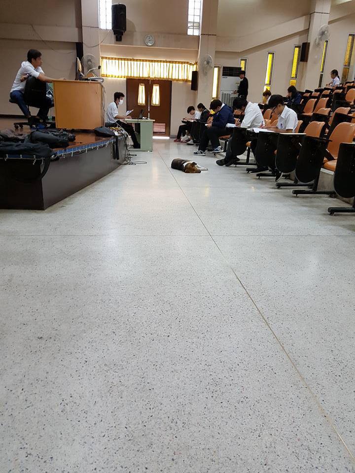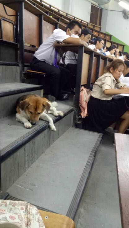 He’s often photographed participating in student activities, such as listening to lectures. He also acts as a canine school ambassador at university events.
