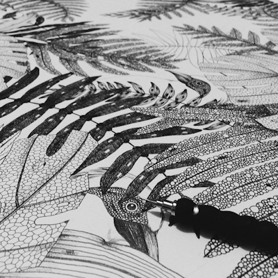 In “The Isolated Land,” the artist shares a series of such images from her imagination via silkscreen prints to tell the story of tropical living on a remote island.