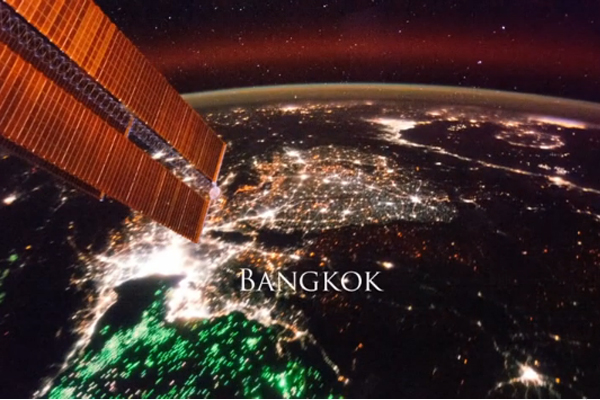 NASA recently released a video taken one month ago by the crew of Expedition 38 on the International Space Station around 8:30pm of Bangkok. The starting point of the journey is Bangkok, before traveling northeast toward the Pacific Ocean, passing over Hanoi, Hong Kong, Korea, and Beijing.