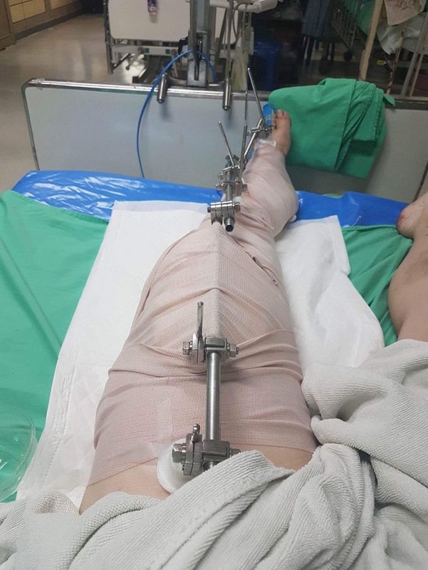 Dr. Kritsada Chairattanaphitak, Vachira Hospital’s Medical Specialist in Hand and Microsurgery, told The Phuket News on Friday, “We have performed several operations on Ms. Liddle’s leg as it suffered multiple fractures and severe damage in the accident.”