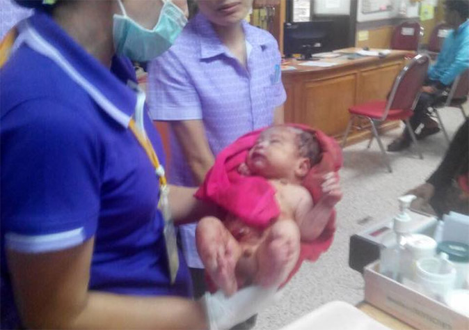 Dr. Charnchai Chanvorachaikul, director of Khon Kaen provincial hospital, said yesterday the earth actually helped stop the bleeding from the baby’s wounds, who remains in the intensive care unit.