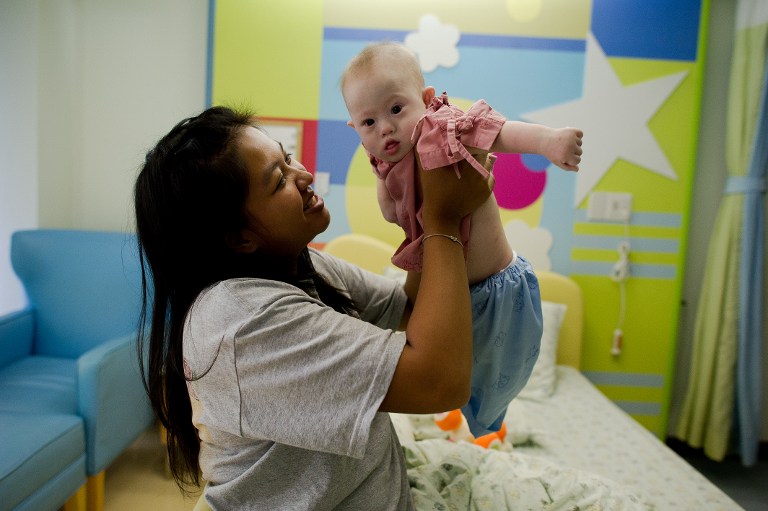 ABOVE: Pattaramon Chanbua holds her baby Gammy, born with Down syndrome, at Samitivej Hospital in the Sri Racha district of Chonburi province on Monday, Aug. 4. Photo: Nicolas Asfouri