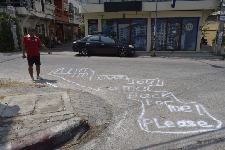 Pattaya police vow to track down the foreigner who made a Pattaya street even dirtier by spray-painting a love note to his girlfriend.