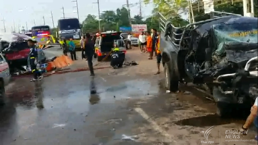 Very early this morning, on Chanthaburi’s Highway 317, a pickup truck collided with a commuter van and left six people dead.