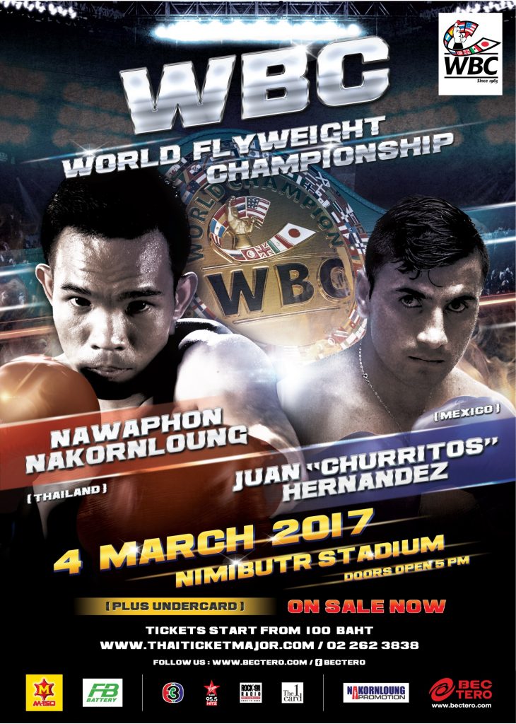 The World Flyweight Championship is happening here in Bangkok and Thailand’s very own hero of boxing will be in the ring. Don’t you dare miss this chance to cheer on our own world #1 challenger, Nawaphon Nakornloung, as he meets the world #2, Mexico’s Juan Hernandez, in the ring on Mar. 4, 2017 at Nimibutr Stadium.