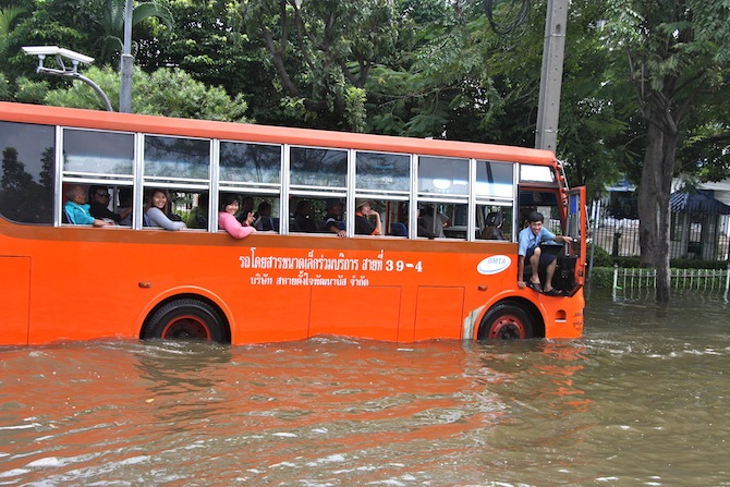 One of the large trucks full of evacuees heading south passed opposition leader Abhisit Vejjajiva assessing the situation – roughly half of the group cheered, while the other half booed. Whether those booing were commenting on Abhisit’s recent trip to the Maldives during Thailand’s worst floods in decades is unknown.