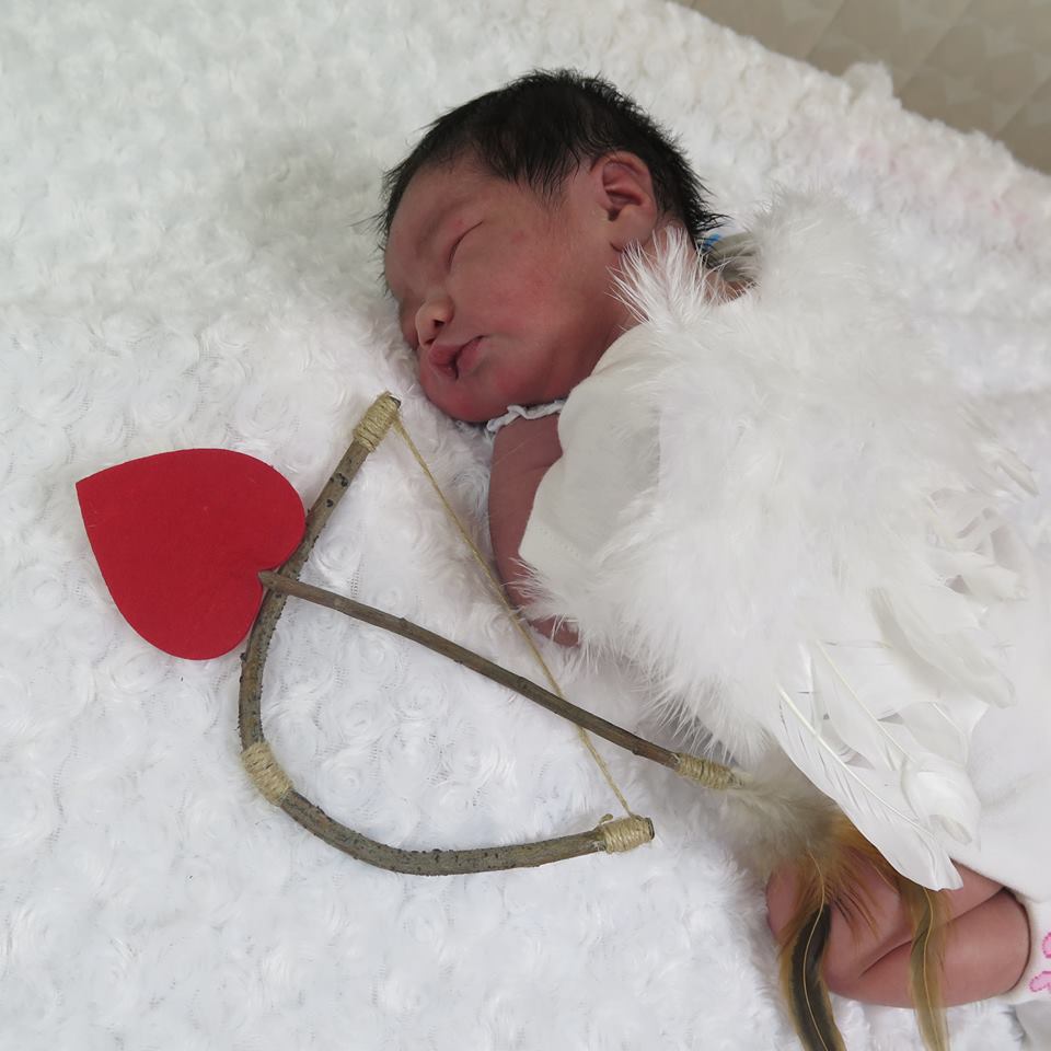 The hospital celebrated Feb. 14 by giving brand-new parents a festive photo opportunity. To fit with the Valentine’s Day theme, they decorated their nursery room with colorful balloons, signs, and fur blankets. Of course, little babies got to wear a set of angel wings and outfits covered in hearts.