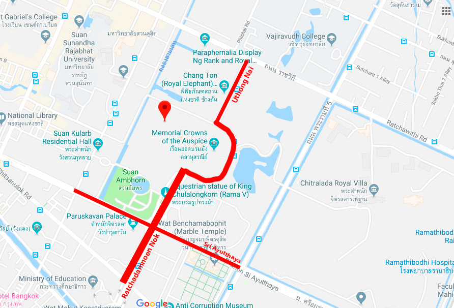 From 6pm to around 10pm, Ratchadamnoen Nok, Sri Ayutthaya and Uthong Nai roads will be temporarily closed for a multidenominational ceremony honoring the “five sacred religions” to be held at Dusit Palace starting at 5pm.