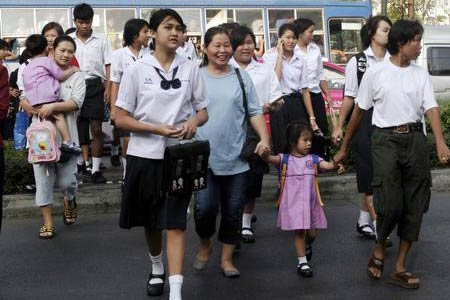 The atmosphere around Bangkok was reportedly bustling this morning as schools resume classes today. At Surasakmontree School on Vibhavadi Rangsit Road, students were seen being dropped off by their parents while some traveled to the school by public buses as usual.