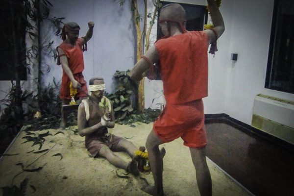 The whole museum is very visual; from displays of uniformed guards lining up a rifle to execute a prisoner, photos of a beheading or paintings of some torture methods used in the Ayyuthaya times – such as (don’t read this bit if you’re squeamish) cutting out chunks from a prisoner, frying them and making him eat them, slicing off the skin and pulling it down to make a kind of skin sarong and opening up the skull and putting hot iron on the brain. So, perhaps not the ideal place to visit before lunch.