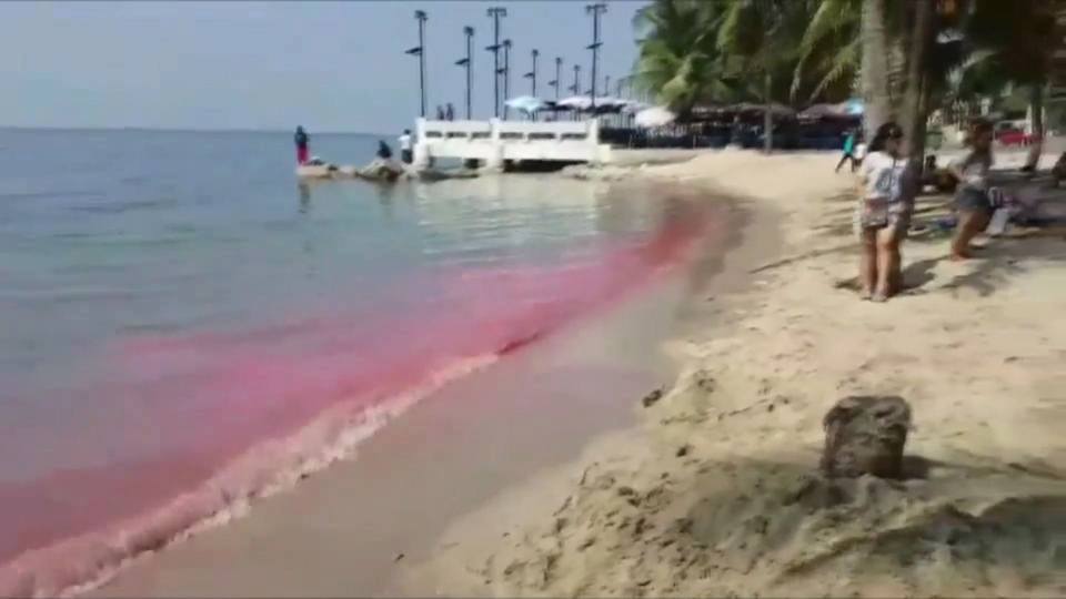 People who spent their long weekend relaxing in Bangsaen would have noticed that the popular Chonburi beach briefly turned pink yesterday morning.