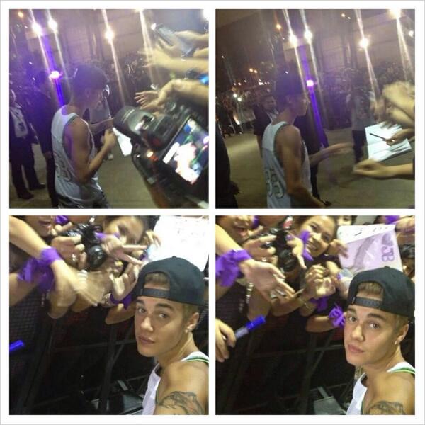 Justin put his luggage in a waiting car before spending ten minutes signing autographs and posing for photos with his fans.