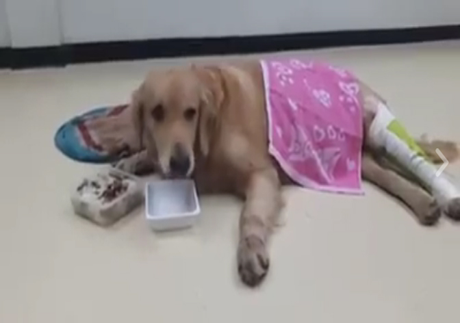 Apparently, after jumping off the truck, Mo was found with a broken left hind leg by Expressway Authority of Thailand officials at the Pak Nam 2 exit. They sent her to get treatment at the Animal Hospital of Kasetsart University and posted photos of the found dog online.