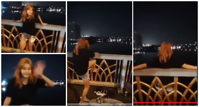 She hands him her phone, removes her shoes and stands on the railing. In the five-minute video, a Thai song about heartbreak plays in the background and for several minutes as she simply sits silently on the edge of the bridge and occasionally sips beer from a bottle.