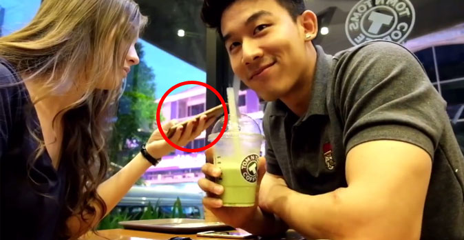 A Bangkok dude showed the social network he would not sit there to be ignored by his girlfriend whose nose is stuck in her smartphone while they are on a tea-drinking date.