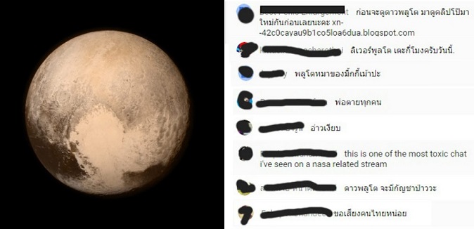While the whole world was excited to watch a broadcast of Pluto’s big heart on YouTube yesterday, keyboard trolls showed off the old Thai pride by spamming NASA’s international educational session with nonsense in Thai.