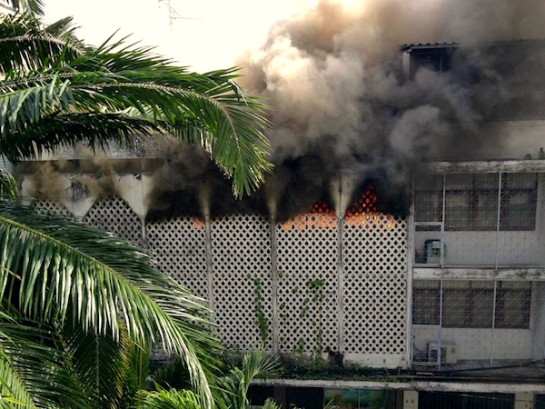 Investigators are estimating the damage and examining the cause of fire. Officials are asking Bangkok drivers to avoid Phayathai Road at the moment.
