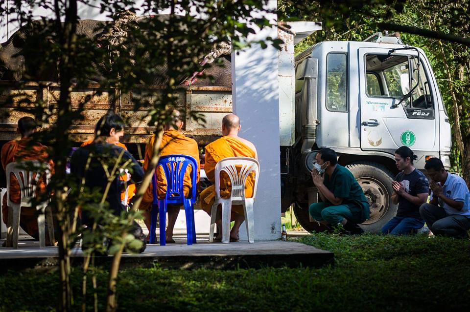 The Thai Elephant Conservation Center, in Lampang province, held a buddhist funeral for Chompoo yesterday morning, amid the sadness of the veterinarians and staff members who had been caring for the pachyderm.
