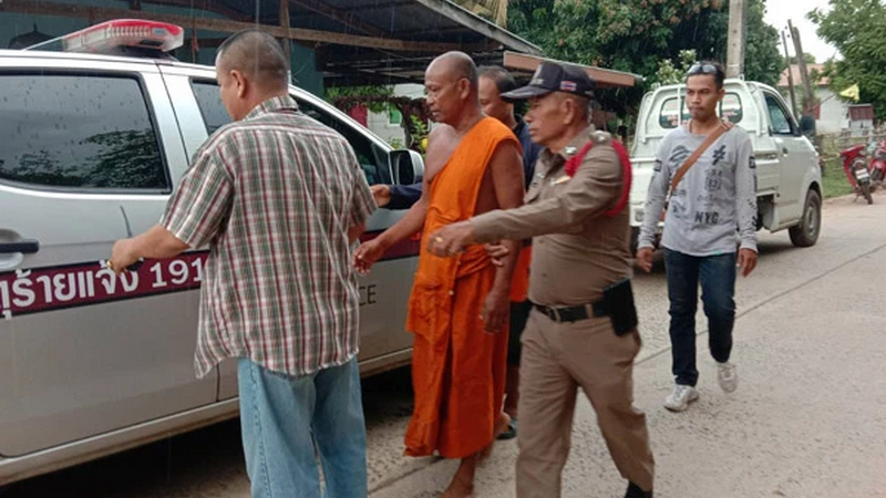 Aum Deereunrum, the 57-year-old abbot of Wat Ban Nong Bua was arrested at 7pm and his makeshift machete seized as evidence after police discovered the body of Rumpai Bualoi in front of her cousin’s home in the northern subdistrict of Tum Yai.