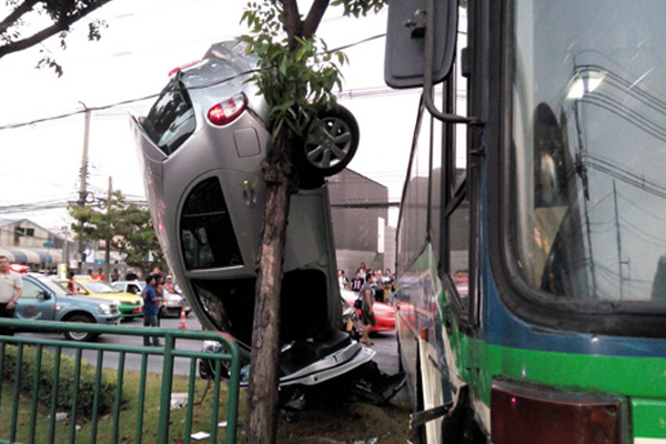 Just before making that U-turn in front of The Esplanade shopping mall on Ratchadapisek Road, remember to always look left for crazy, out-of-control buses speeding toward you.