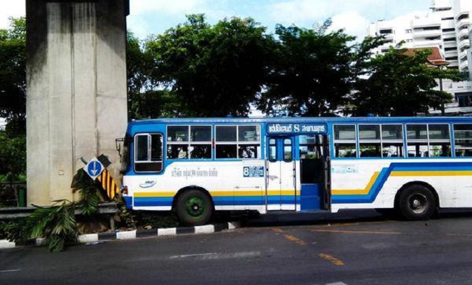 The Bangkok Mass Transit Authority said bus No. 9 driver Jakkaphol Boonying, 27, was fined THB3,000 and suspended for one month after he sped head-on into a concrete support column at BTS Ari on Tuesday.