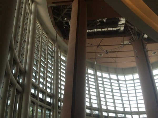 Fortunately no one has been reported injured after a large section of the ceiling came crashing down around 2pm at Chamchuri Square, a mall typically packed with students from Chulalongkorn University.
