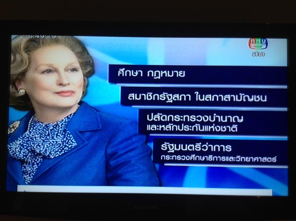 “Khao Ha Na Nueng,” a program that airs daily on Channel 5 from 6 to 8am, broadcasted the photo together with Thatcher’s biographical highlights in an adjoining sidebar.