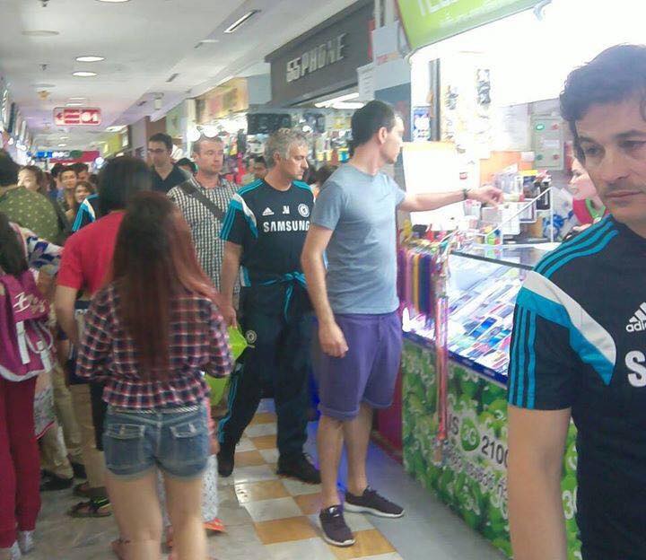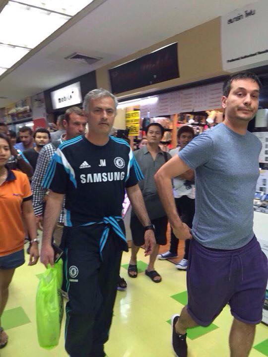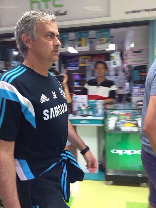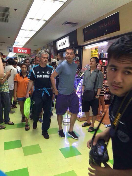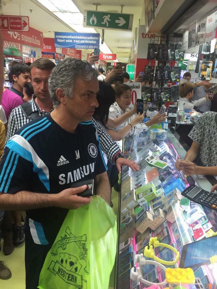Facebook page Chelsea Thailand shared photos of the Portuguese manager yesterday as he was seen window-shopping at second-hand stalls for mobile phone.