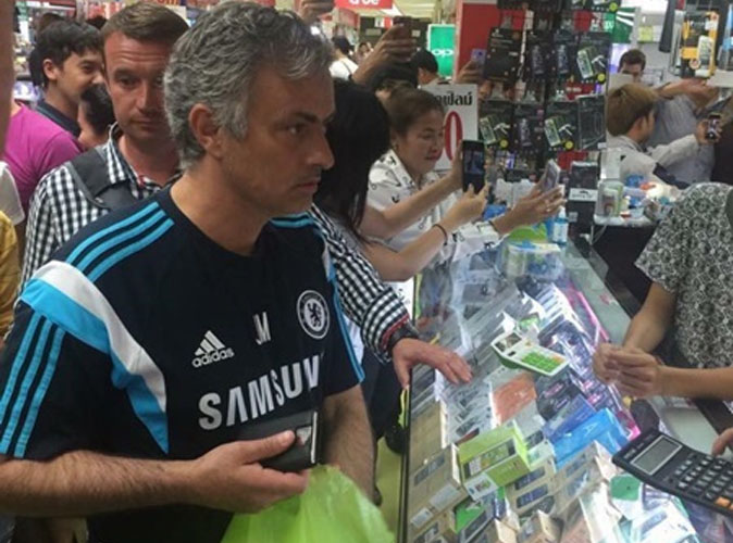 Facebook page Chelsea Thailand shared photos of the Portuguese manager yesterday as he was seen window-shopping at second-hand stalls for mobile phone.