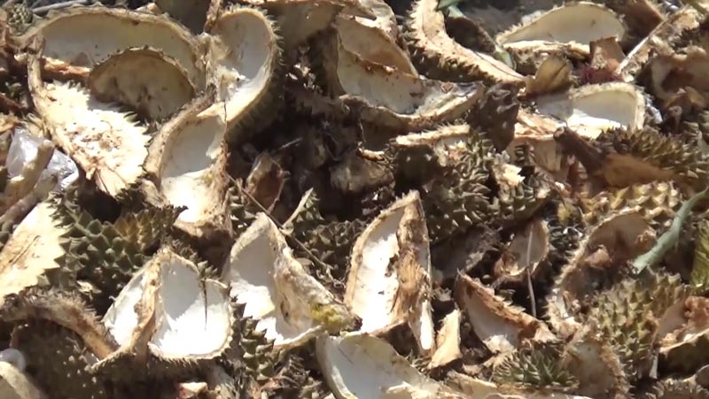 So how many durians are Chiang Mai tourists and locals putting away every day? While we don’t have a proper durian headcount, a video from news website MThai shows that the city is dealing with a growing mountain of durian shells at a landfill in Muang district.
