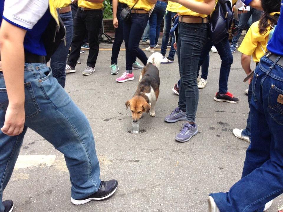 In the annual run on Saturday, Shortie was filmed running along the freshmen up the hill. He was well taken care of by the students, who served him water along the route and helped him get to the finish line.
