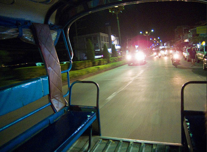 We Ilei, 25, was admitted to Memorial Pattaya Hospital after he leap off the vehicle around 1am early today while on the way back to his hotel in South Pattaya with friends. Illei is suffering from severe brain trauma, according to police.
