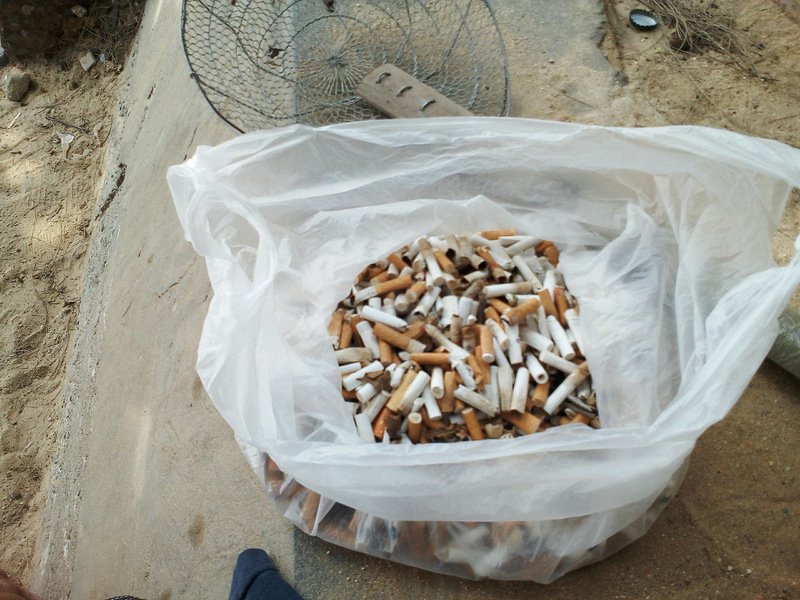 Local tambon chief MaAnn Samran said he was unaware of how bad the problem of cigarette butt litter at Surin Beach was until he recently saw photos of how many butts had been picked up by a citizen at the beach in just 30 minutes earlier this week.