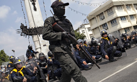 Television pictures showed clouds of teargas and police crouching behind riot shields as officers clashed with protesters near Government House. It was not clear who had fired the teargas and the authorities blamed protesters. “I can guarantee that teargas was not used by security forces. The forces did not take teargas with them,” the National Security Council chief, Paradorn Pattanathabutr, told Reuters. “Protesters are the ones who threw teargas at the security forces.”