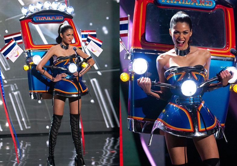 In a more recent story, everyone was talking about the Miss Universe pageant last week where our awesomely tacky “tuk tuk dress” won the best national costume in the world.