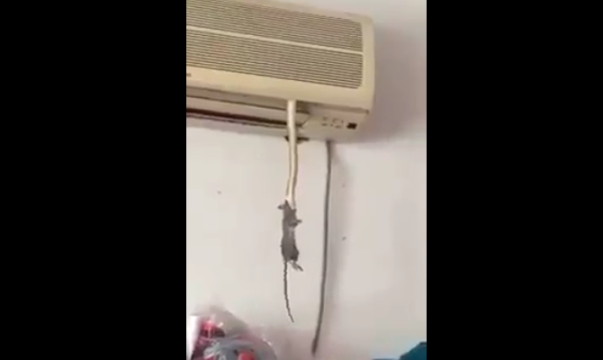 The snake appears to bite the rat’s neck, take its entire head into its mouth, and retreat back up to its aircon home to feast in peace.