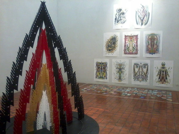 Exhibits included a beautiful collection of ceramic fallen leaves on the floor, a neon-lit dress, manga-style paintings and art you can interact with from a smartphone app. As you’d expect from the National Gallery, the flavor is distinctly Thai, with installations drawing influence from traditional Thai architecture, wats made from textiles, and even several pieces referencing the recent demonstrations’ Guy Fawkes masks.