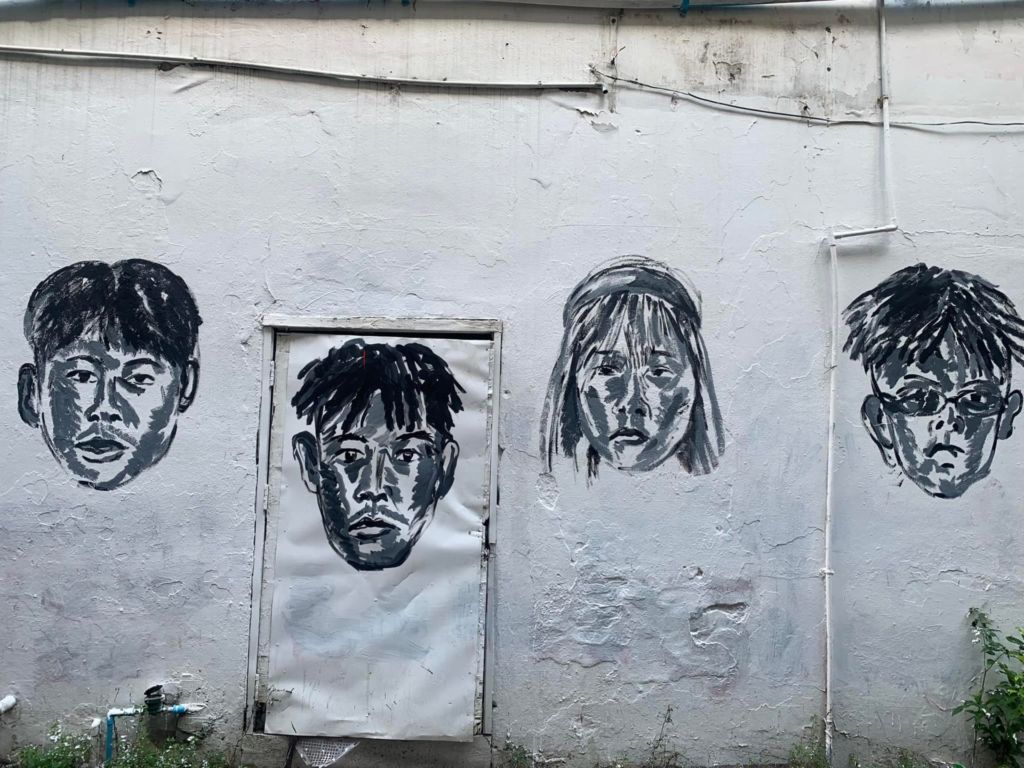 About 20 cops rolled up on WTF Gallery and Cafe in Soi Sukhumvit 51, where an artist had painted a wall with portraits of several protesters who say they were tortured to which phrases such as “Fuck the Popo” and “Fuck the King Kong” had been added.