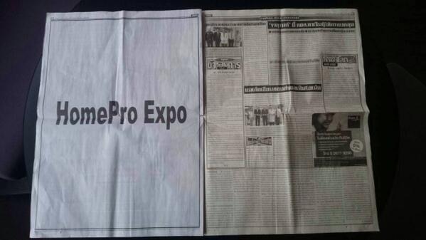 Many people were surprised to find a full blank page with nothing but the words “HomePro Expo” printed in big, bold letters printed in yesterday’s Thairath newspaper. Although it was totally unintended, the non-advertisement was a big hit online, where it went viral after being sort of mocked and appreciated.