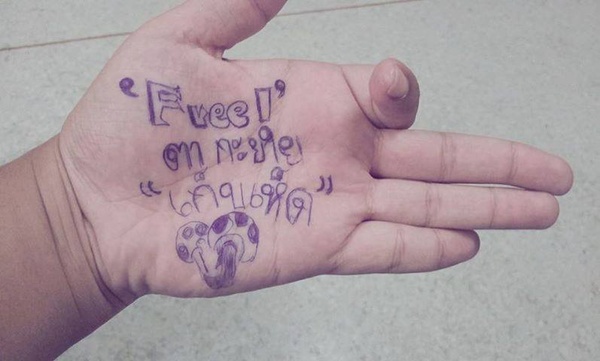Their situation caught the attention of sympathetic Thais, who began an online campaign featuring pleas for their release written on their hands. Udom has since been released on THB500,000 bail due to health problems.