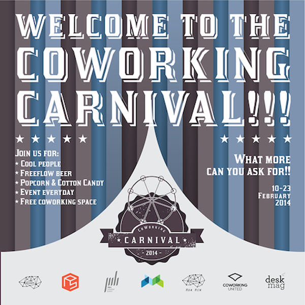 The “Coworking Carnival” features meetups and informative sessions on social advertising, legal issues and more. For more information, visit the site.