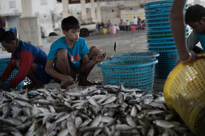 Southwest of Bangkok, barrels of fish packed in ice are usually rolled off boats at the bustling port in Samut Sakhon by Myanmar and Cambodia migrant workers who prop up the world’s third largest seafood producer.