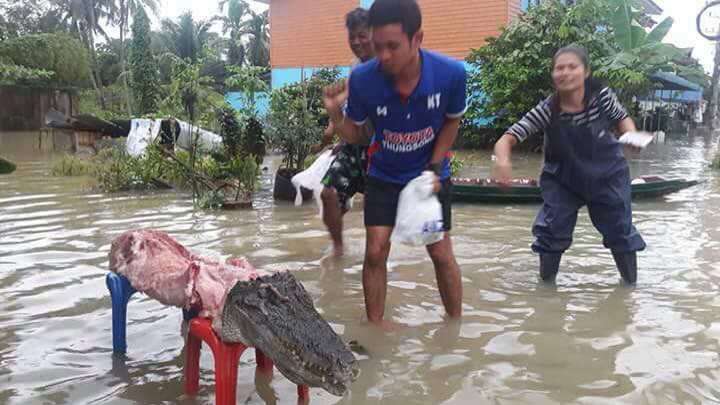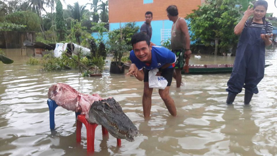 When rumors spread that there were crocodiles on the loose in flooded Nakhon Sri Thammarat province, residents made the most of the situation by simply killing and eating the one beast they encountered over the weekend.