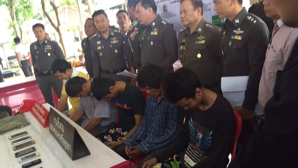 The gang consisted of three adults: Ekkapoj Rattanakorn, 29, Pattanarosspong Kansonthi, 33, Sureekrai Anumat, 30 and three minors, aged 17 and 18, whose names were withheld.
