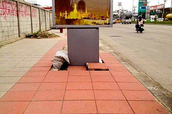 To the annoyance of many pedestrians and cyclists, the Bangkok Metropolitan Administration (BMA) has recently erected street-level billboards in the middle of bike lanes and pavements throughout the capital.