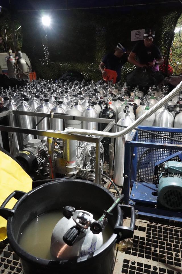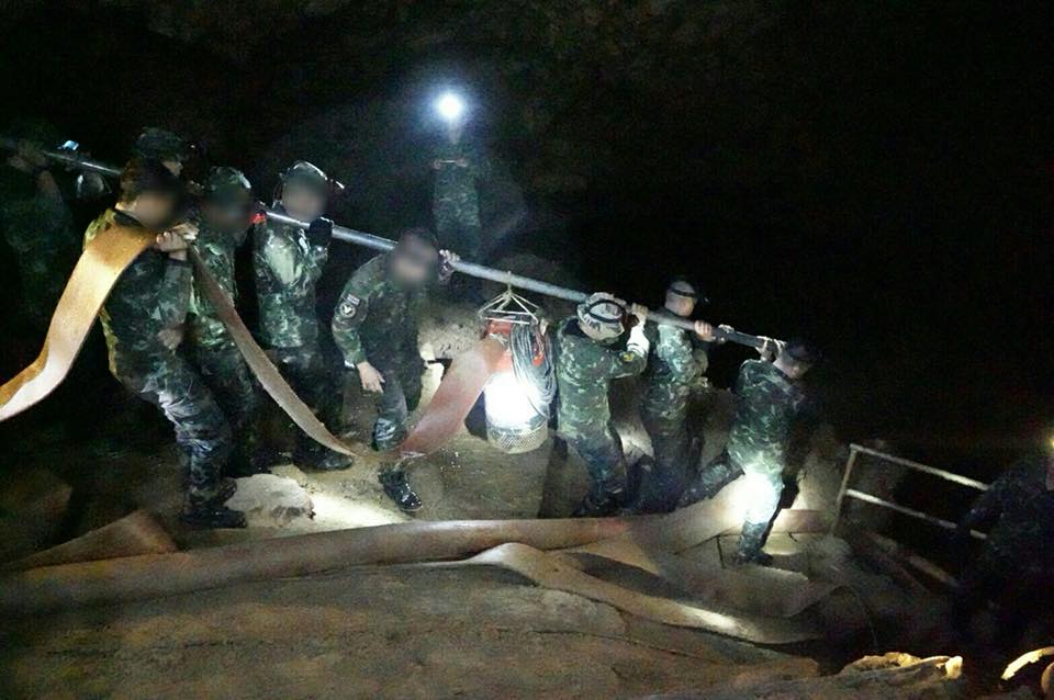 Last night, rescuers placed extra oxygen tanks, strong ropes and LED lights along the cave’s walls, providing a path to the chamber. AFP reported last night that the team has advanced 600 meters from the base towards the Pattaya site — while heavy drilling at separate chimneys outside the cave has started in an attempt to establish communication with the boys.